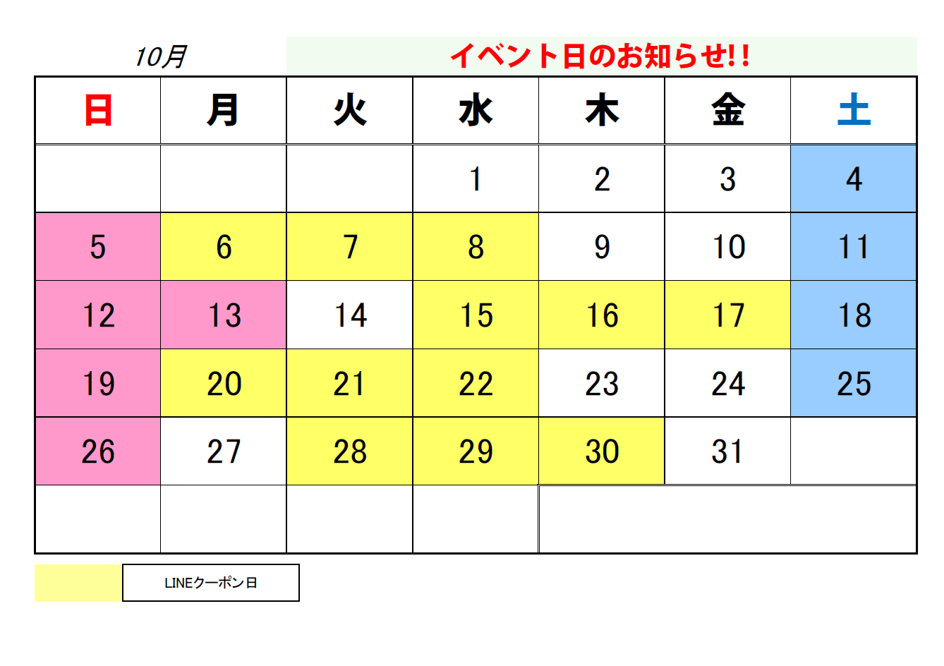 - イベントやお得なクーポンなどを中心に配信してまいります。