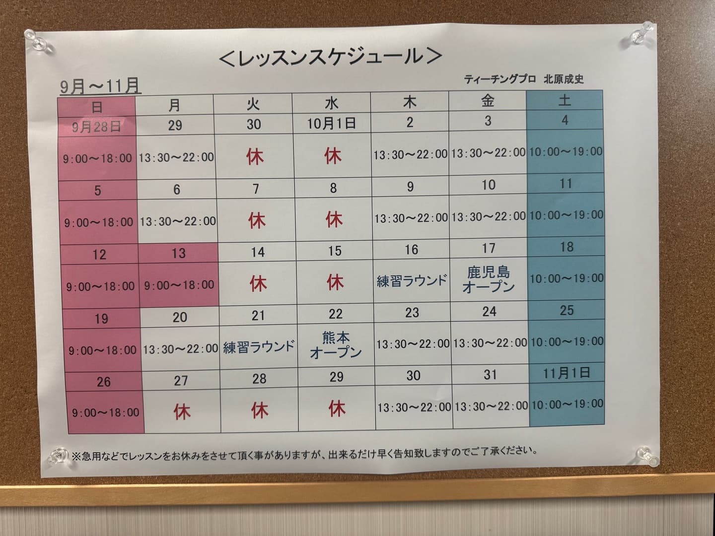 火曜日・水曜日 - ※レッスン回数券ご希望のお客様は当スタッフまでお申し付けください。